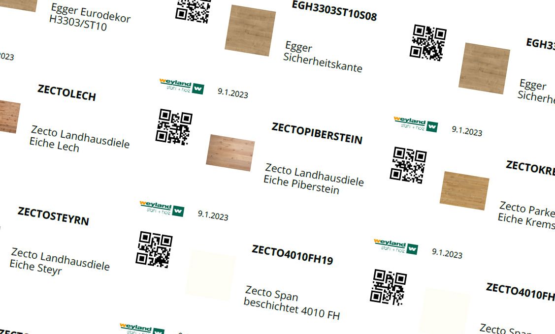 Der Etikettendruck ist für ein genormtes, aber überall erhältliches Etikettenformat (Avery Zweckform 3658) konzipiert. Es handelt sich hierbei um ein vorgestanztes Etikettenpapier im Format A4.
